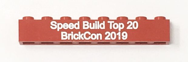 In the Finals, I had to build Overwatch #75972 Dorado Showdown. I went into the round with an advantage because I had built this set a few weeks prior to BrickCon. Unfortunately, I made a grave mistake early on requiring me to take apart and rebuild a portion of the set, costing me about a minute. Ominously for the third game now I ended up 6th place. Even though I did not take first place, I earned a “Speed Build Top 20 BrickCon 2019” Brick as a prize.