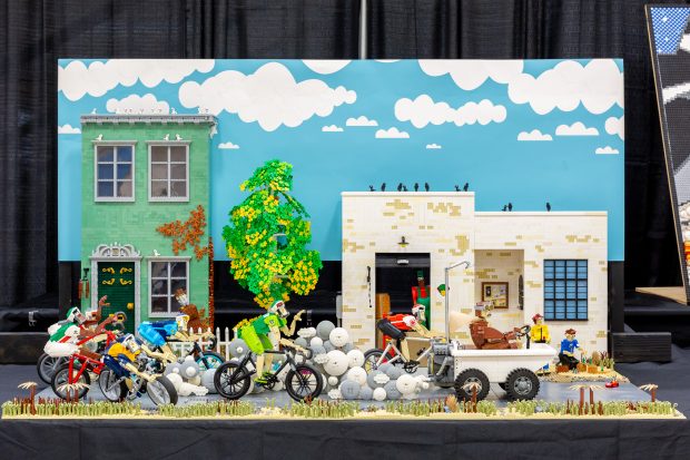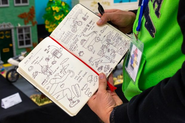 The best part of attending an event like this is the additional depth you can discover when talking with the artist about their work. In the case of this model, Ty Keltner was inspired to create this scene by the discovery that the Turtle Shell parts introduced in the LEGO Super Mario series look a lot like Bike Helmets. It’s an inspired realization, and the finished model is brilliant. More so, he showed me some of the detailed sketches he drew before starting to build the model using real bricks. It’s amazing to see how closely the drawings match the finished model!