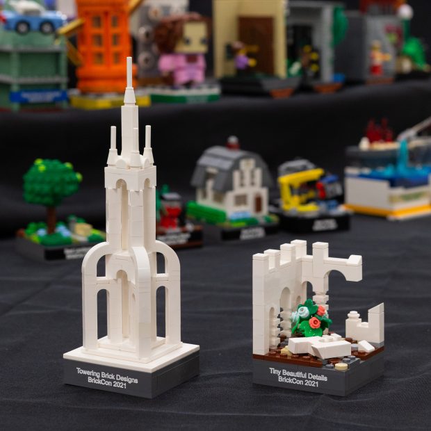 For the first time, I also had the responsibilities of a Theme Coordinator – which meant that I needed to decide which awards would be given out, create the trophies, and pick the winners for my theme. It’s not a surprise that I was asked to organize the Architecture theme. Given the “TBD” theme for this year’s BrickCon, I settled on two trophies: “Tiny Beautiful Details” for the model with the most intricate detailing, and “Towering Brick Designs” for the model which is both big and beautiful.