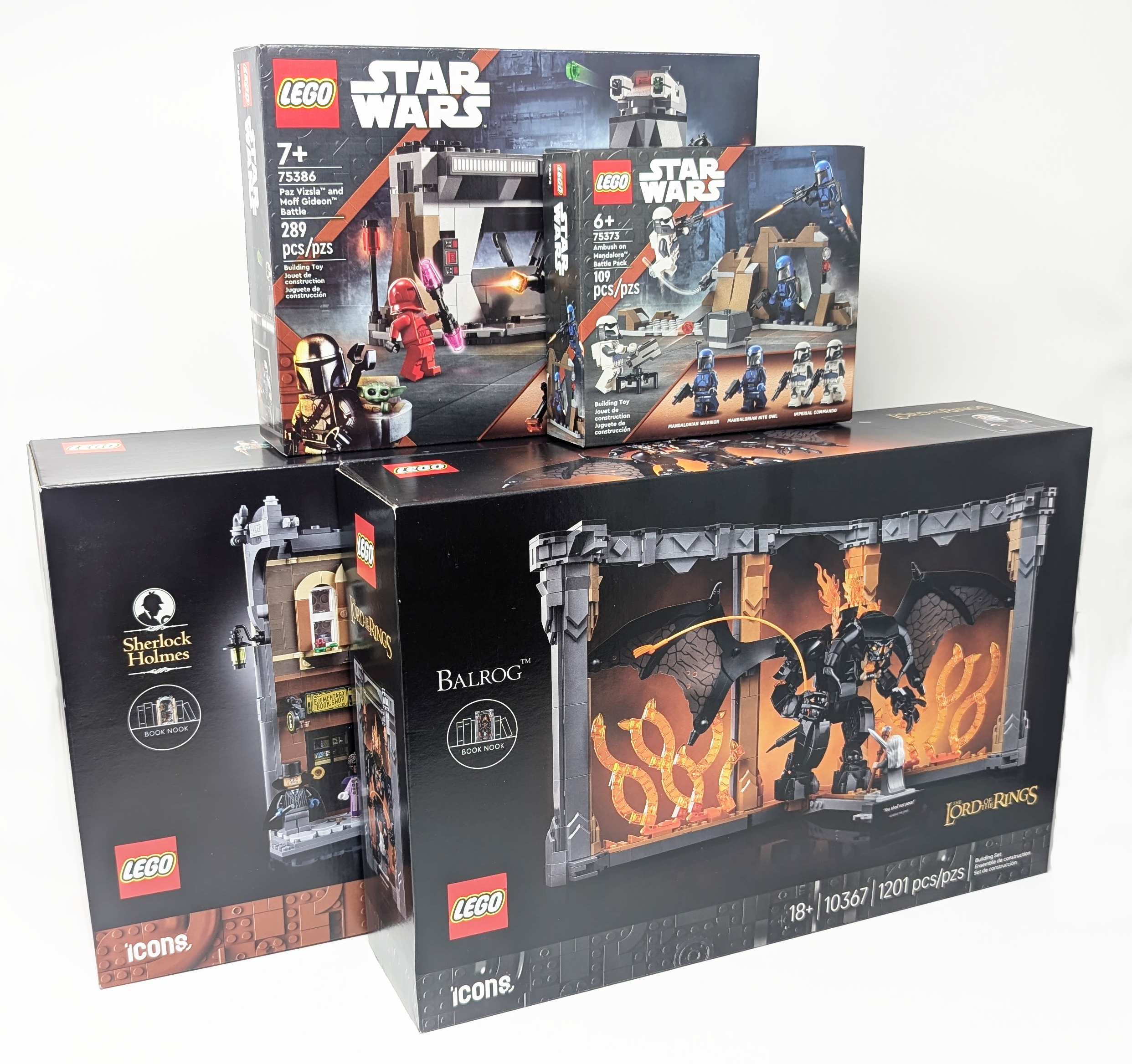 #10367 The Lord of the Rings: Balrog Book Nook comes with 1,201 pieces, retailing at $129.99/€119.99/£109.99, giving it a price per piece of 10.8c/10.0c/9.2. The second Book Nook, #10351 Sherlock Holmes Book Nook has more pieces, coming with 1,359 pieces and priced at $129.99/€119.99/£109.99, giving it a very favorable price per piece of 9.6c/8.8c/8.1p in the current market of LEGO prices.