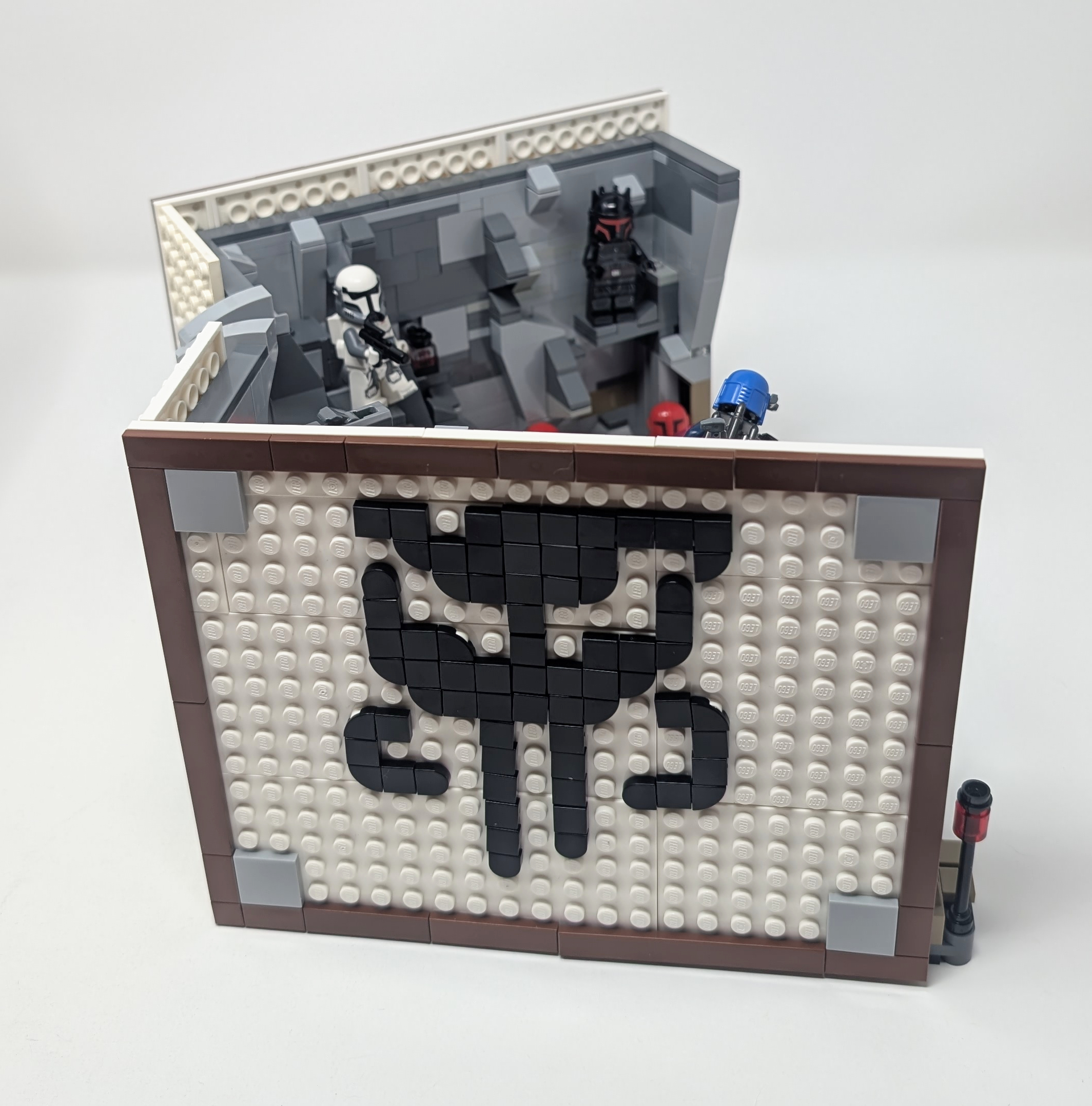 For the cover of my Book Nook, I drew inspiration from the tiled elegance of #10351 Sherlock Holmes Book Nook but adapted it to fit The Mandalorian source material. Since The Mandalorian is a TV show, not a book, I styled the cover like a DVD case, choosing 1White