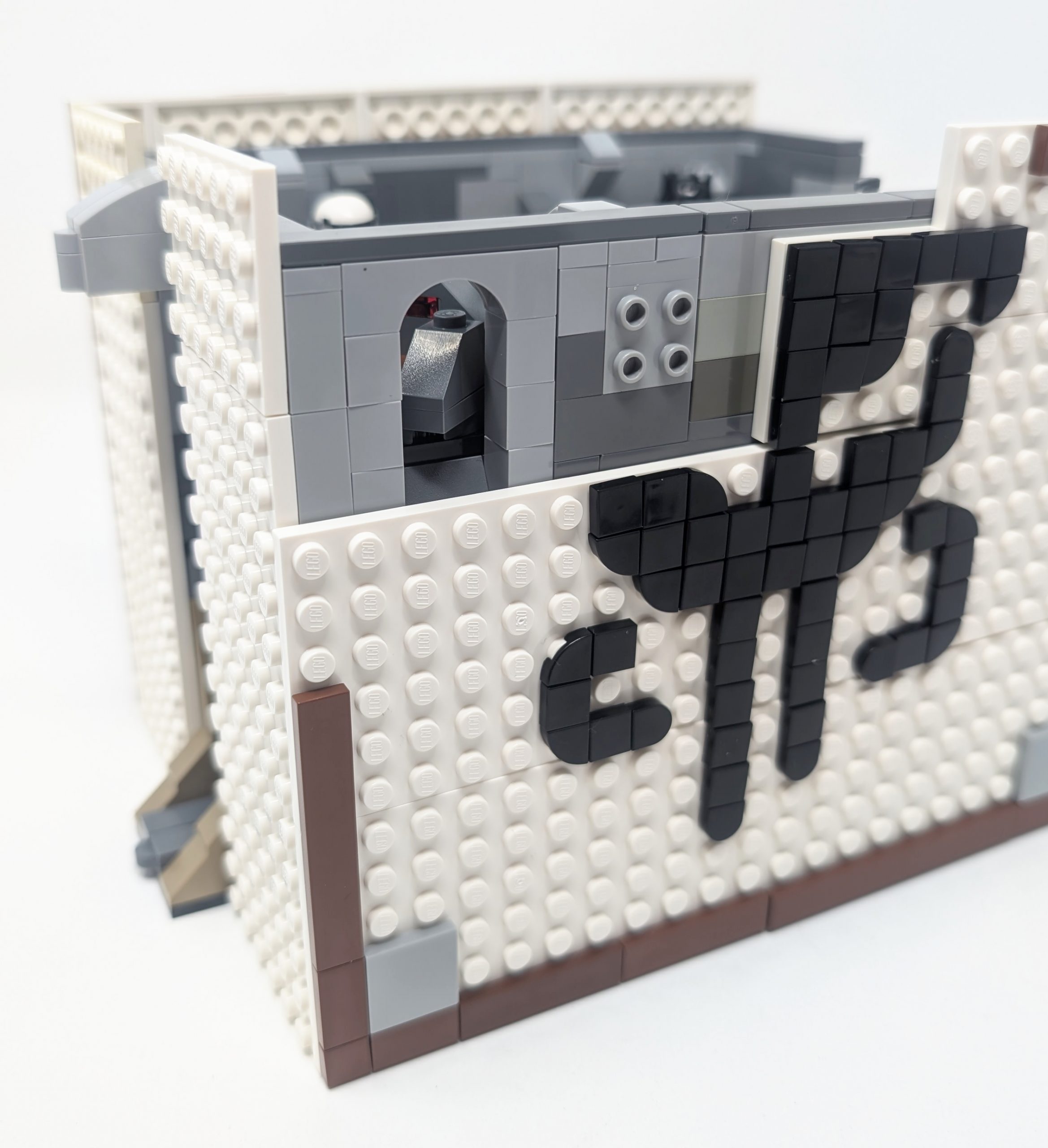as the base color to evoke the plastic casing look. For the central cover detail I tried my hand at a Mythosaur Skull sigil, built from black plates and tiles. Due to size and part limitations, the sigil is shorter than ideal, but still recognizable. If I were to rebuild it, I’d extend the height to better capture the details. Compared to the official Book Nooks my version is very short, almost half the height of #10367 The Lord of the Rings: Balrog Book Nook. This was an intentional decision due to the limited number of pieces in my collection. Had I made it any taller I would not have had enough 1White plates for the covers.