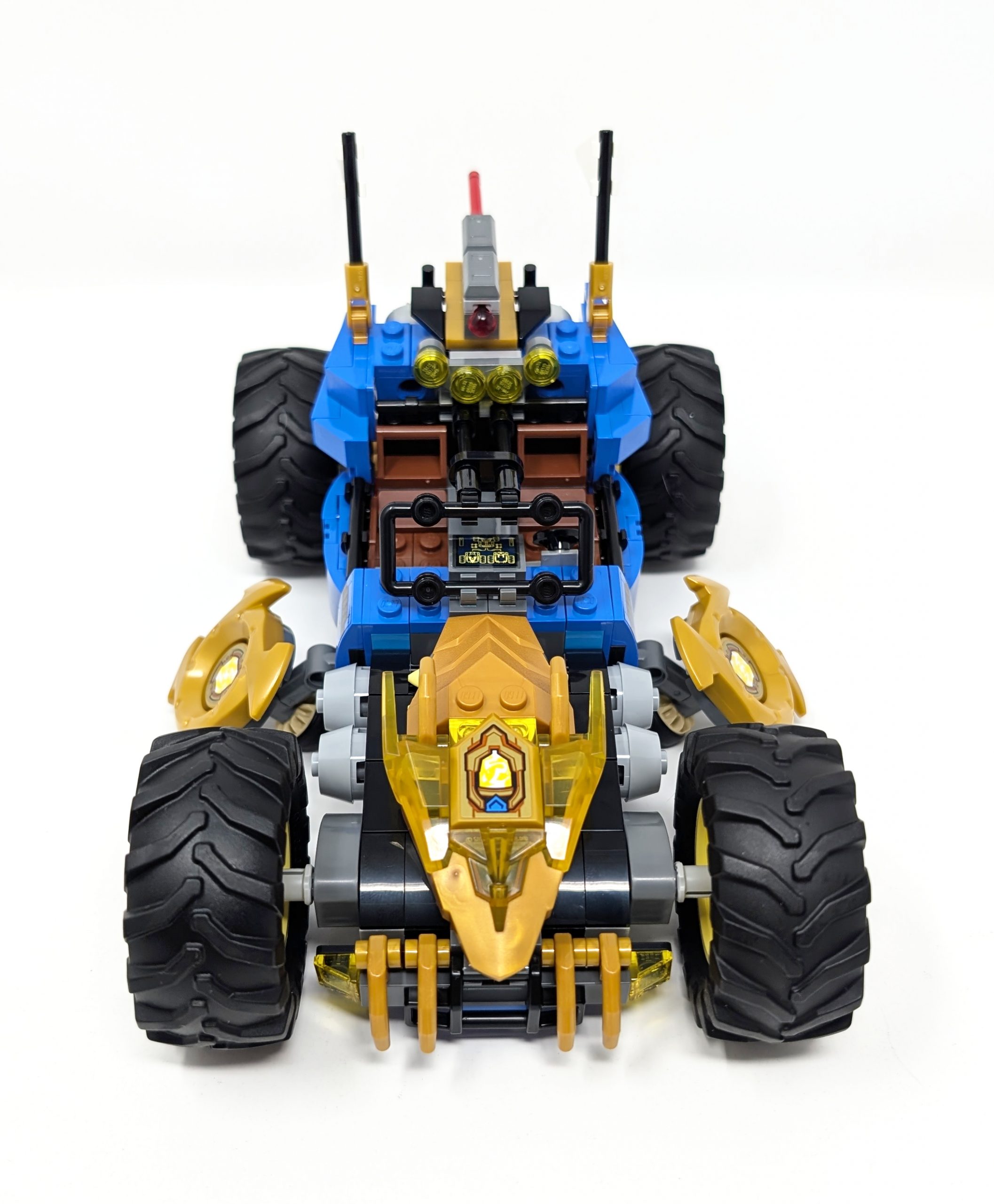 As the name of the set suggests, the car can transform. The hood of the car is designed to have a detailed underside that can be rotated allowing those playing with the set to choose with version of the vehicle to use. The two options are a regular car hood style or a Dragon Mode which reveals a 297Warm GoldPearl Gold dragon head and claws. While this is probably a fun feature for children, I was not blown away with this, instead feeling they could have just kept the dragon look by default and shave 5$ off the set price. Although the end product is not spectacular, the build experience and technique to create this mechanism was fun, although not one that I feel I will replicate in my own builds. Resting along the side of the car are two oversized shurikens. As was my assessment with anything oversized I feel this detracts from the build, but I am sure its ability to spin makes it alluring for its intended target audience.