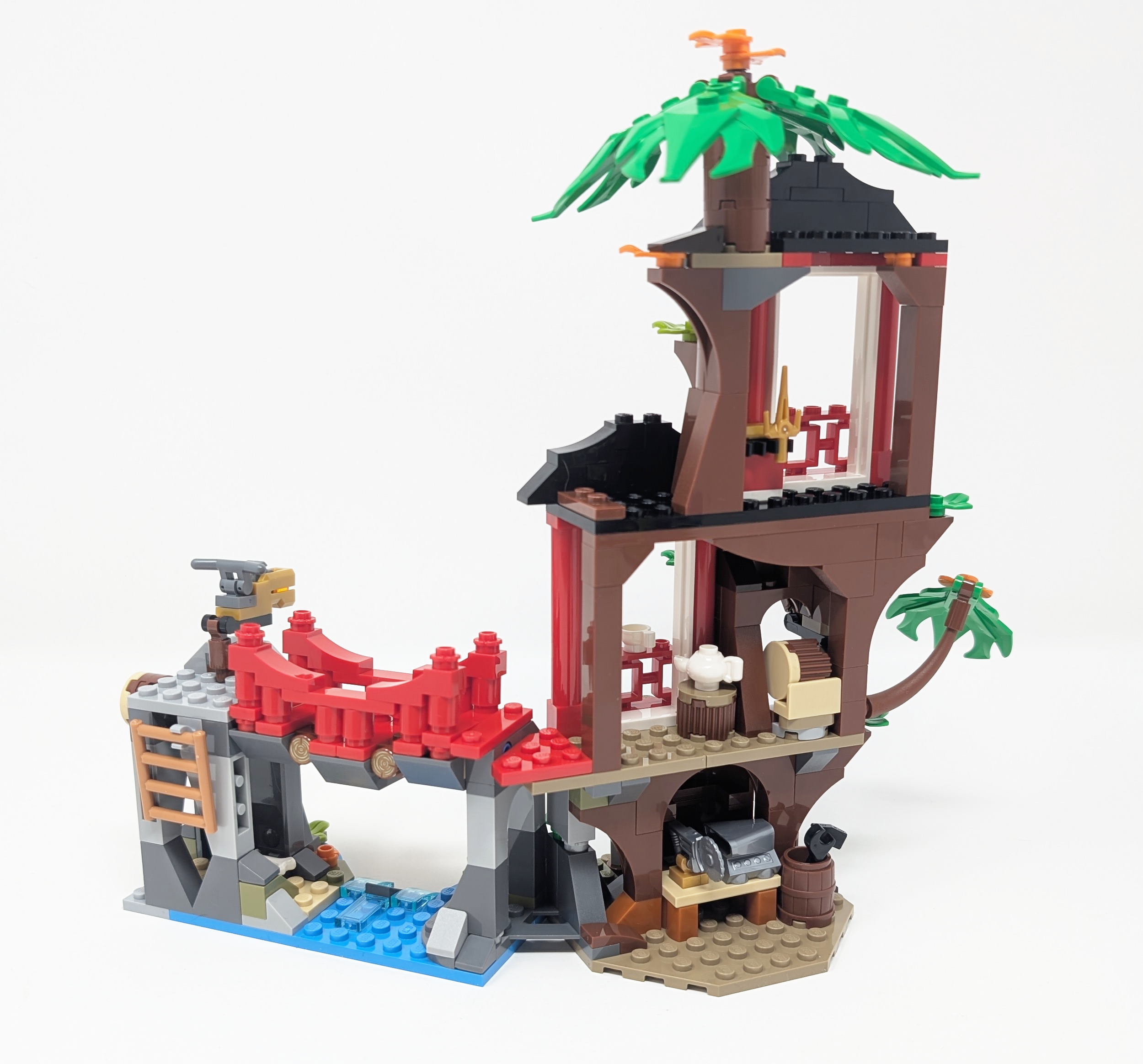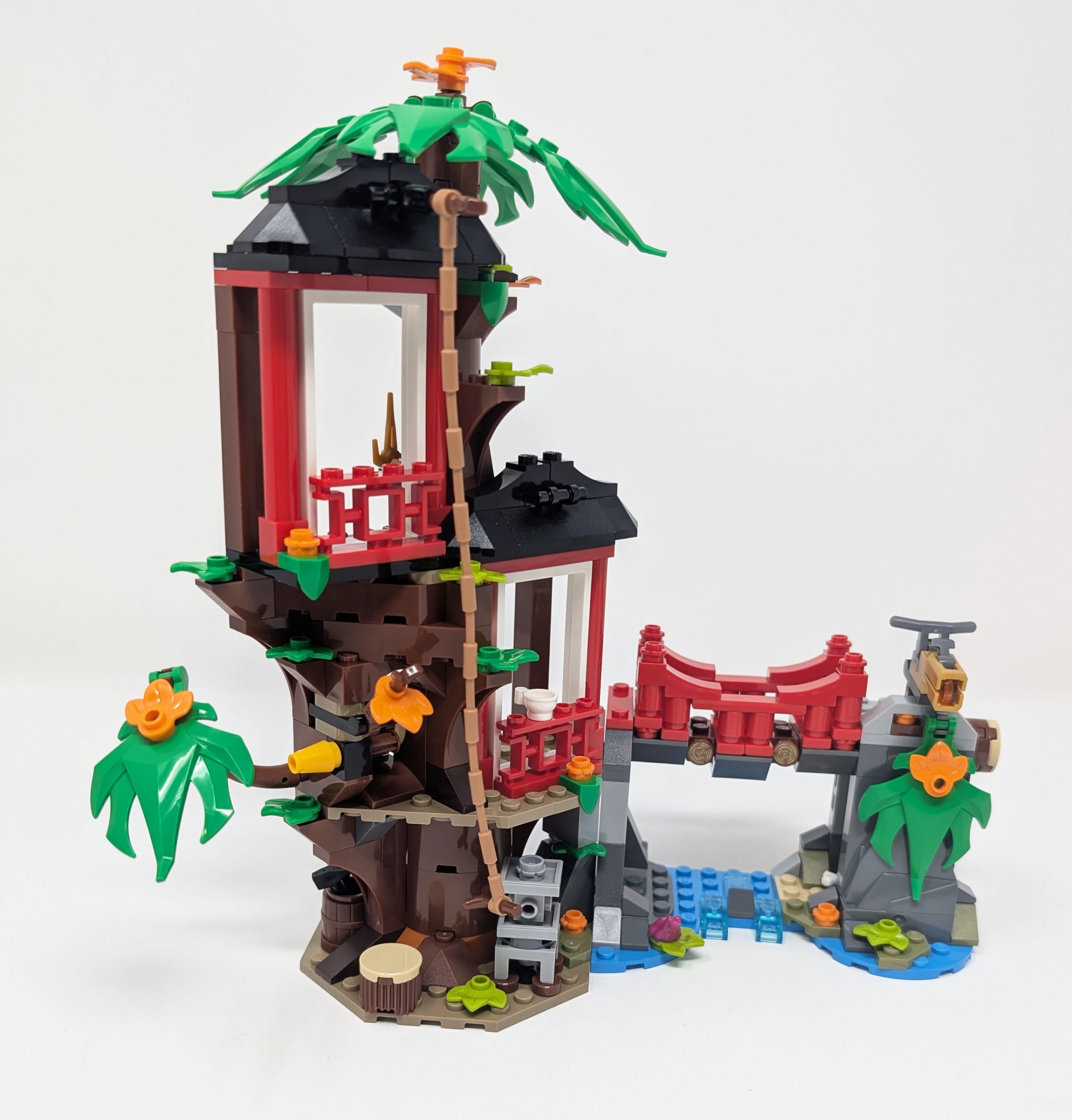 I love it. As a fan of architecture and buildings it took too long to see the first structure in this wave of sets. Ninjago is known for some incredible structures, especially through the Ninjago City modular line so I know the designers have the ability to create some fun looking buildings. The treehouse does this well by capturing natural aesthetic through trees, rocks and a running stream and combining it with traditional Japanese architecture. While sometimes a stereotype, the bright 21Bright RedRed and 26Black utilized in this build is reminiscent of Fushimi Inari Taisha that can be found in Kyoto. I am sure the color and shape choices made were no coincidence with the designers referencing real life architectural styles to replicate in the set.