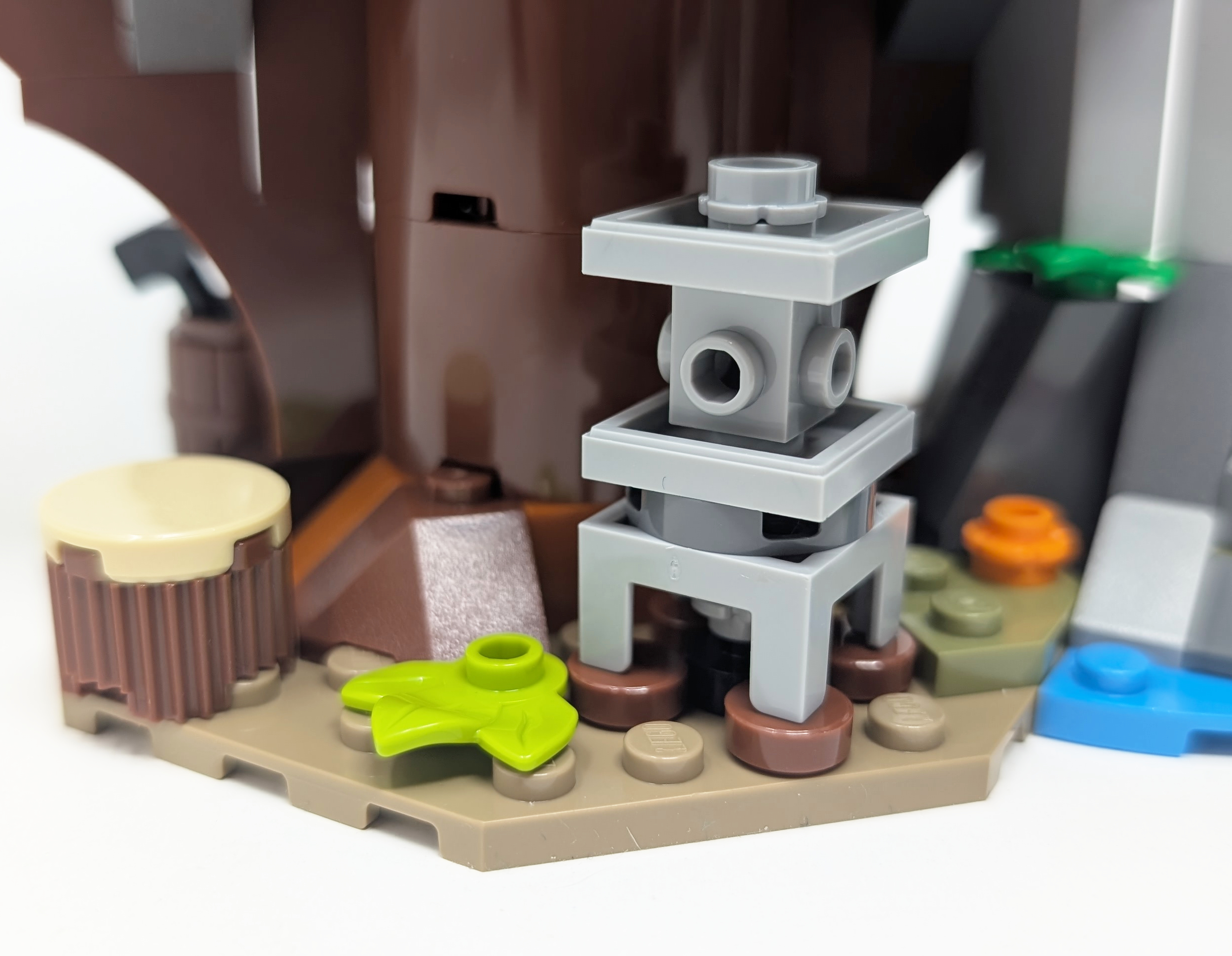 While relatively small, the bridge leading up to the treehouse has a built in play feature that allows the bridge to rotate, giving it a rocky bridge aesthetic. This bridge is a great example of a play feature that also acts as a display piece as you can pose the bridge in ways to give the scene more energy. The 21Bright RedRed of the bridge also effectively blends into the colors of the treehouse making it a transitional pathway.
