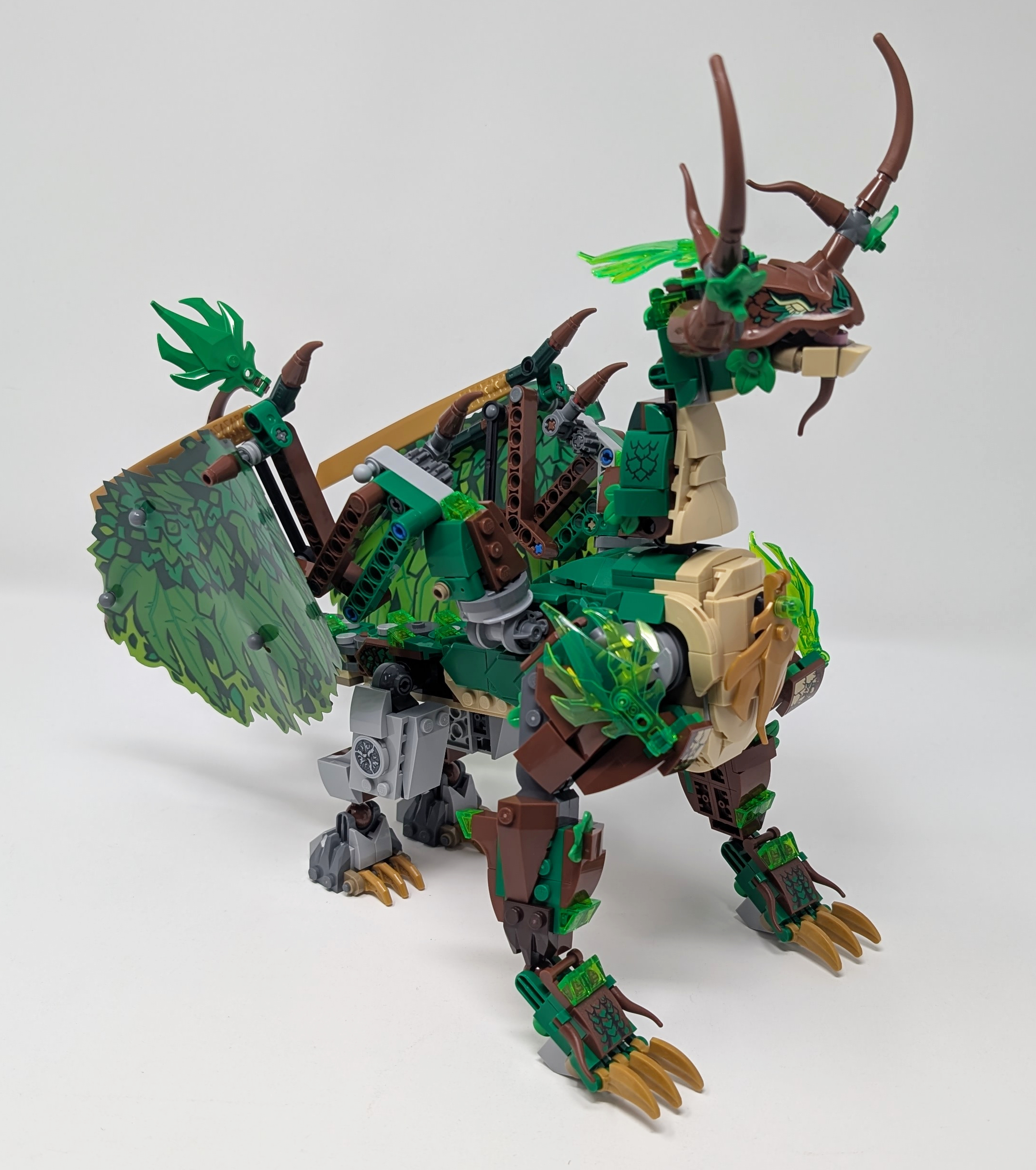 I cannot talk about #71859 The Dragon of Life without the bulk of this section being about the Dragon of Life. LEGO does not hide that this is the key focus of the set as the name of the set is literally just the name of the dragon. Although I cannot comment on screen accuracy of this majestic dragon, I will say this is the best LEGO dragon I have ever seen. The dragon’s core structure is built using Technic connection to give it a robust base, with brick built layered detailing built atop using SNOT (Studs Not On Top) build to give it a rounded and smooth detailed finish. The wings utilize Technic for its skeletal structure, with a foil sheet for the wing’s membrane. This is likely done for a variety of details, most notably to reduce the piece count and get shapes and details that would otherwise not be possible with LEGO bricks. While this feels like cheating, it is an understandable decision. One thing you do not appreciate until you build the Dragon of Life is the sheer scale of the dragon. the model measures over 11 inches (28cm) high, 15 inches (38cm) long and 21.5 inches (55cm) wide when its wings are fully extended, which is huge. The Dragon of Life is an amazing build, but what stands out to me is the sturdiness. Some of the past dragons including the Red Dragon from 21348 Dungeons & Dragons: Red Dragon’s Tale are flimsy, highlighting how LEGO has learned from past errors to create what I believe to be the best dragon to date. Everything from its shape, to size, to color and building techniques used to put it all together makes it a great set to put together and display.