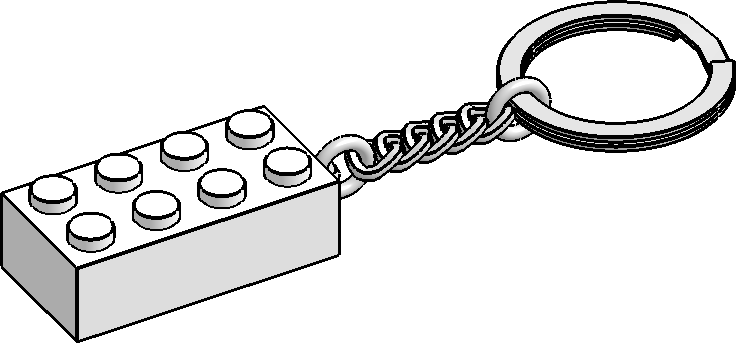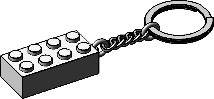 49757 Key Chain, Chrome Chain and Ring with 2 x 4 Brick