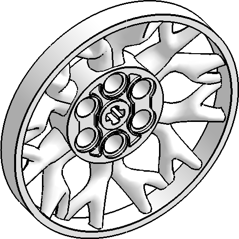 Wheel 7 x 7 with Center Axle Hole, 6 Pin Holes, Curved Spokes (Part 7230)